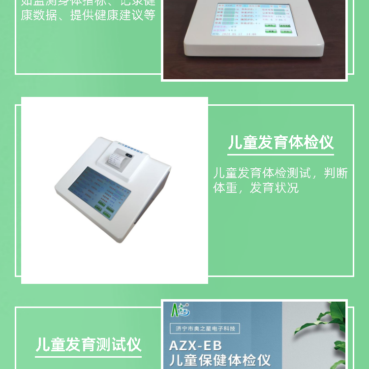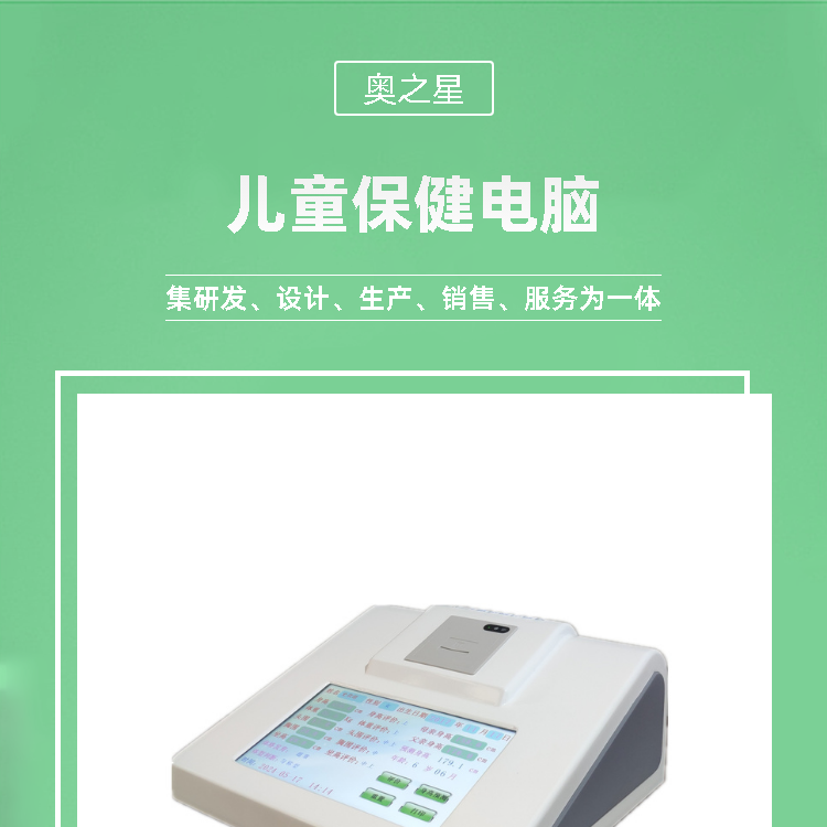 【奥之星 0-7岁AZX-EB儿童发育测试仪 10寸大屏 标准型】是由济宁市奥之星电子科技有限公司精心研发的一款专业儿童健康智能设备,售价3890.00元每台,专注于0至7岁儿童的全面发育评估。结合先进的儿童健康管理系统,这款测试仪助力家长和专业人员实现科学、便捷的儿童健康检查和促进。