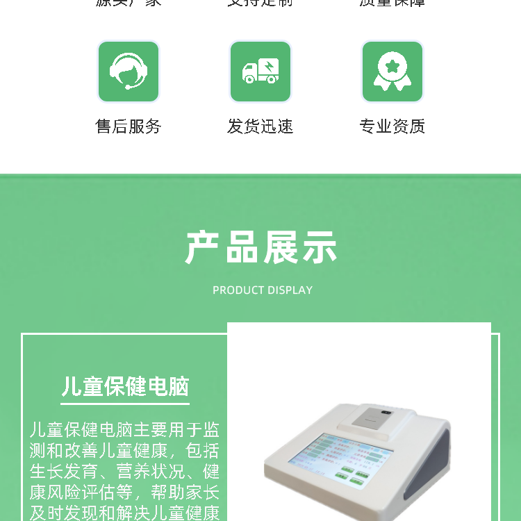 | 主营产品 | 中医体质辨识系统,儿童综合发展评价系统,儿童智力测试仪,身高体重测量仪 | ||